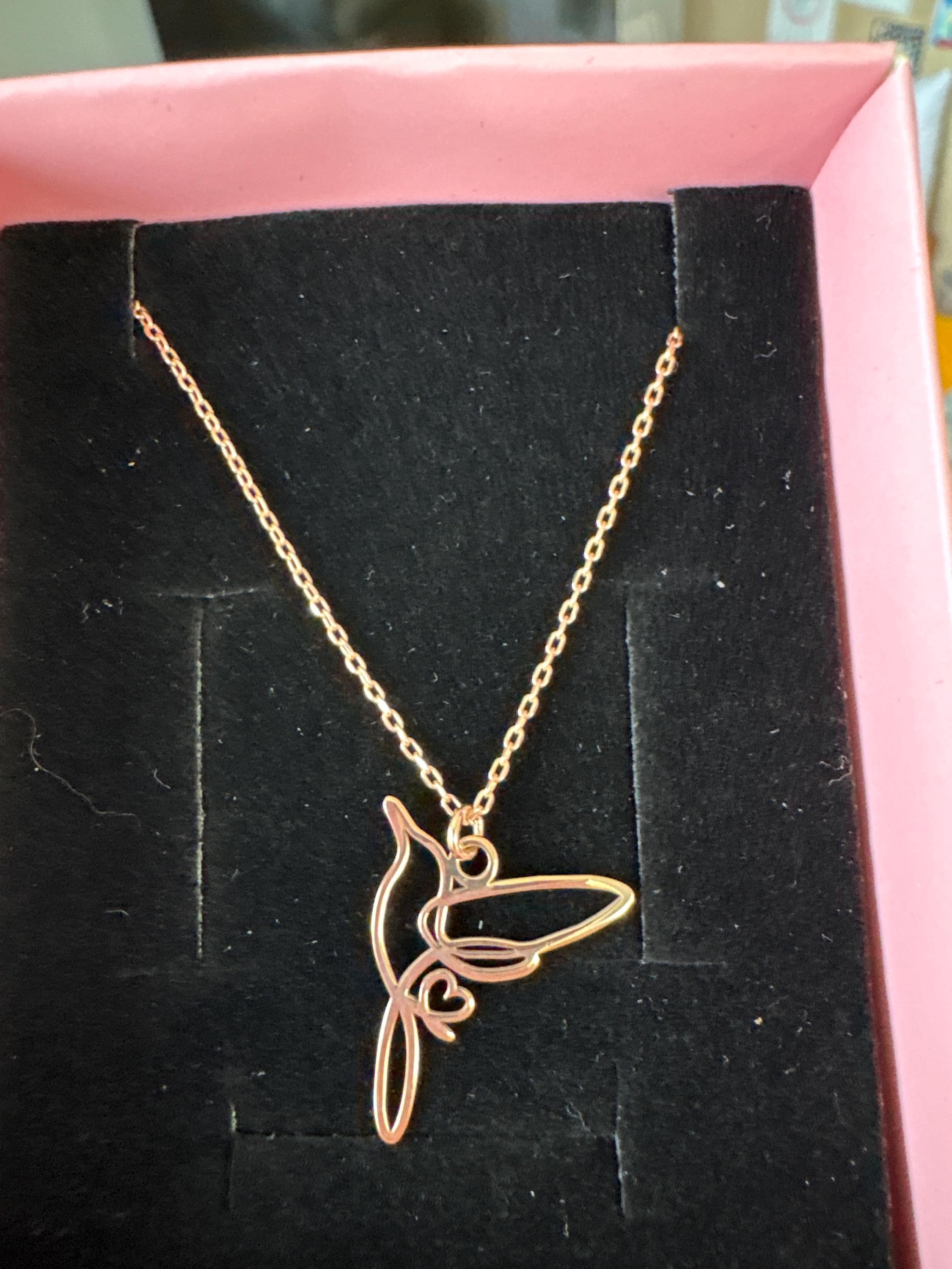 Beautiful necklace. A great gift for my daughter who loves hummingbirds!
